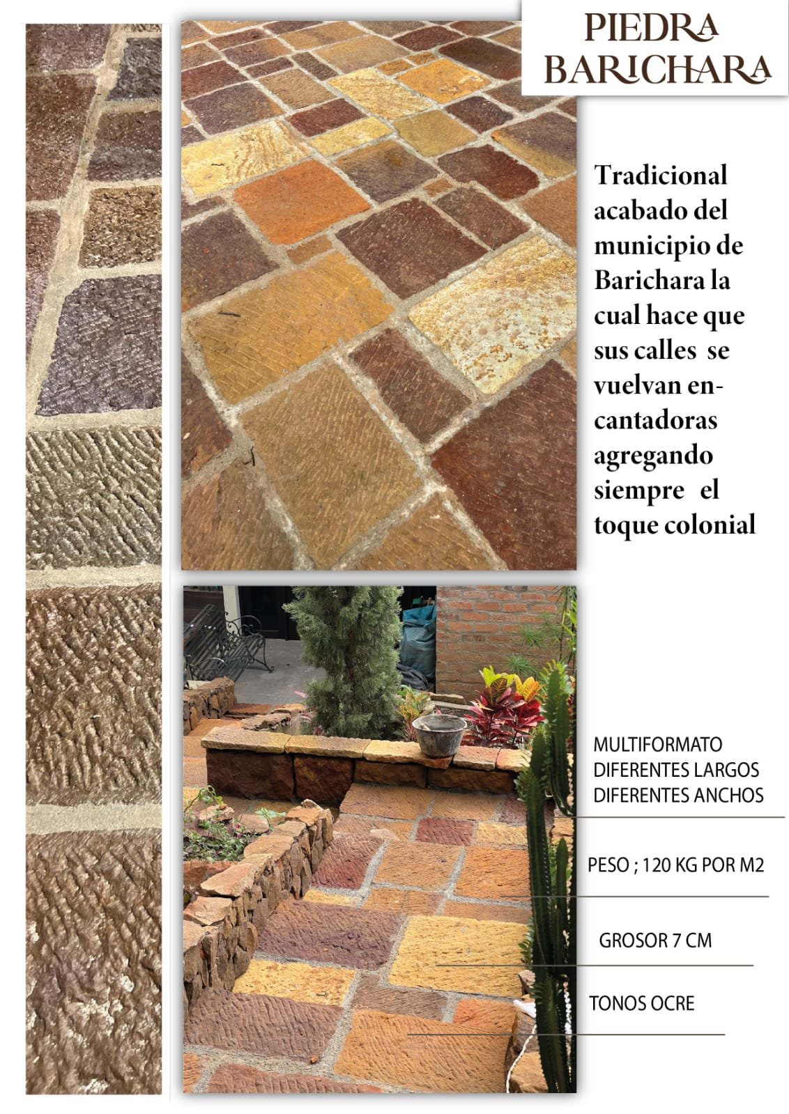 La piedra Barichara es una piedra natural muy apreciada por su belleza y durabilidad. Originaria del municipio de Barichara, en Colombia, esta piedra se caracteriza por sus tonos cálidos que van desde el amarillo hasta el marrón, con vetas y texturas que le otorgan un aspecto rústico y elegante. Es muy utilizada en construcción y decoración, tanto en interiores como en exteriores, gracias a su resistencia y fácil mantenimiento. Su versatilidad permite su uso en pavimentos, fachadas, muros y detalles arquitectónicos, aportando un toque distintivo y atemporal a cualquier espacio.