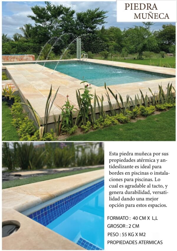 Es ideal para revestimientos de paredes, pisos, encimeras y elementos arquitectónicos, aportando un toque de sofisticación y calidez a cualquier espacio. La piedra Muñeca es conocida por su durabilidad y resistencia, siendo capaz de soportar condiciones climáticas adversas y el desgaste diario.