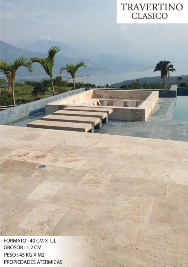 La piedra travertino clásico es una de las piedras naturales más apreciadas por su elegancia y durabilidad. Se caracteriza por sus tonos beige y crema, con vetas y porosidad natural que le otorgan un aspecto único y sofisticado. Esta piedra es ideal para una variedad de aplicaciones tanto en interiores como en exteriores, incluyendo pisos, revestimientos de paredes, encimeras y elementos decorativos.